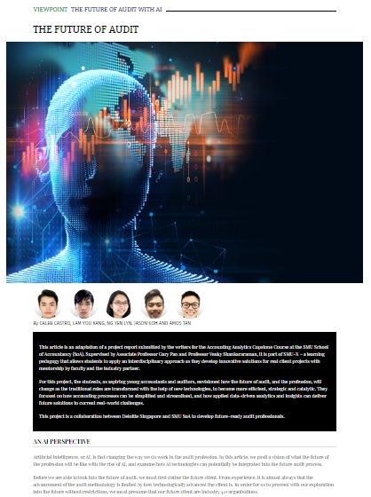 Impressed with the students’ final recommendations, Deloitte’s senior management shared the students’ report as an input for the company’s strategy for the future. The students’ report, titled “The Future of Audit – an AI Perspective” was also published in the ‘Institute of Singapore Chartered Accountant Journal (April 2018 issue)’ – a testament to the innovative and practical research ideas proposed by the students.